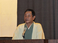 公益財団法人おりづる会への寄付目録贈呈式の後、落語家の月亭八方氏が、自身の運転にまつわるエピソードのほか、落語家になった経緯や先輩・後輩のこと、テレビやラジオの話題を交えながら、「ちゅうい一秒、安全一笑」というテーマで講演を行いました。